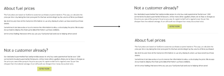 Page Layout – “Fuel Prices” vs “Customer Already?” Module Swap