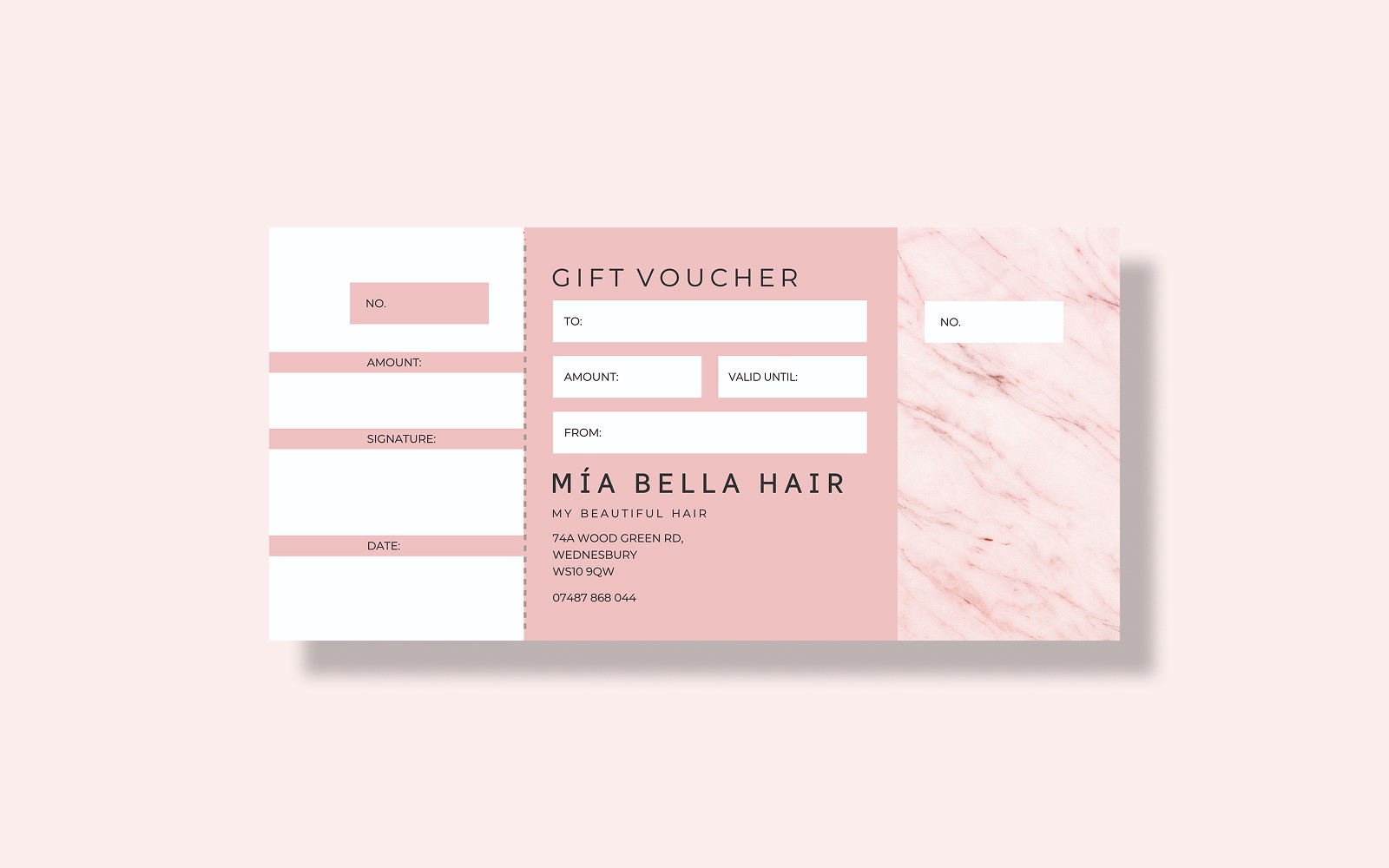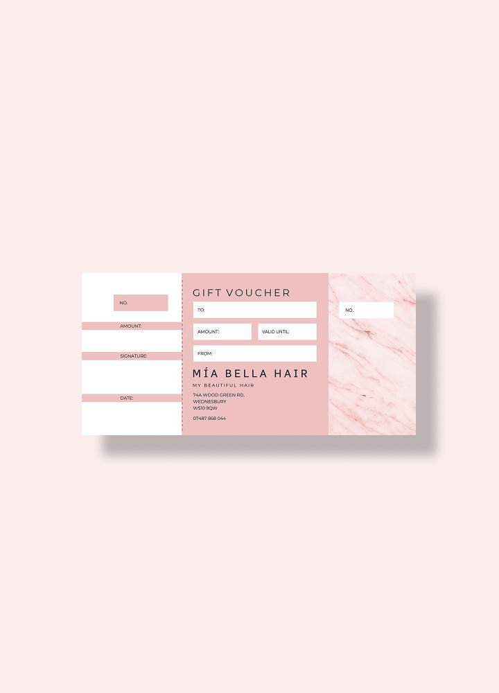 To help Mía Bella Hair shine this season, I designed a set of elegant, print-ready gift vouchers. Clean, confident, and salon-chic, built to boost gifting and look great on any counter.